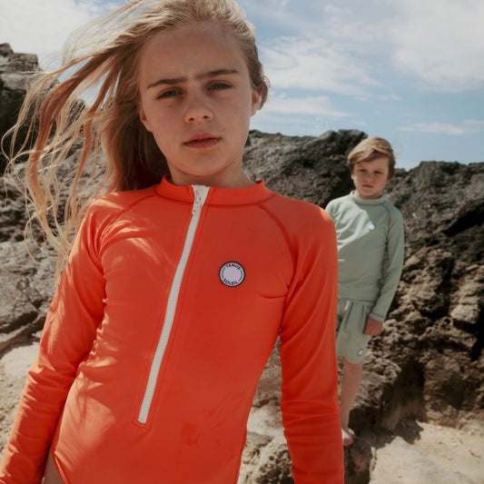 With its delicate coral undertones, this color radiates a sense of tranquility and energy. The swimsuit is super comfortable, dries quickly and is made of breathable and flexible fabric. As a result, your child will not get too hot.